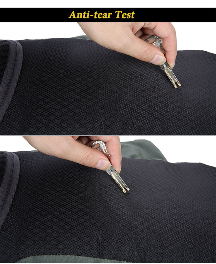 The main body of the backpack is made from a durable synthetic nylon material that is both water – resistant and tear – resistant. It has been rigorously tested to withstand abrasion, as seen in the “Anti – tear Test” where it resists tearing from keys. The reinforced webbing straps and sturdy plastic buckles ensure secure fastening and long – lasting use. Breathable mesh panels on the waist belt, shoulder straps, and back provide excellent ventilation during strenuous activity, reducing sweat and keeping you comfortable.
