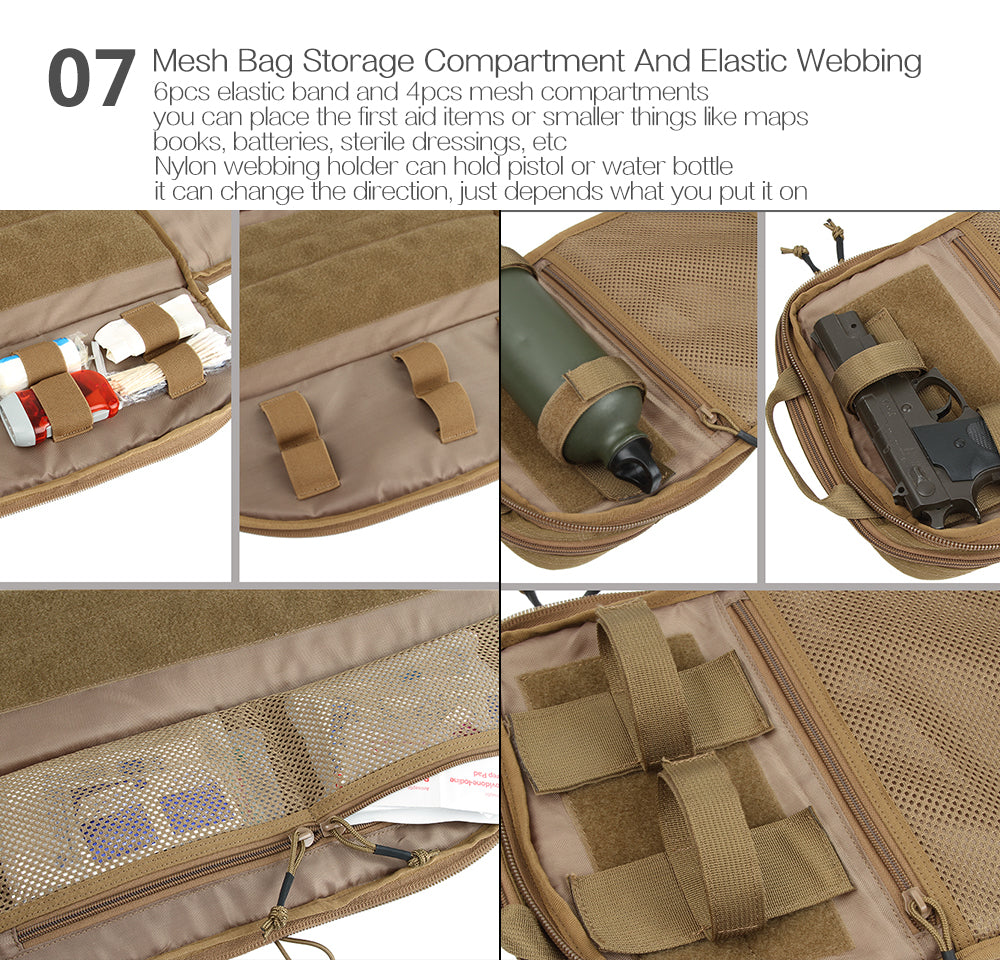 Key features of this backpack include a quick – access front organizer with elastic bands to hold medical supplies like scissors, gauze, and syringes for fast retrieval. The main compartment has elastic bands for magazine storage and 3+ mesh wall pockets for small items, along with magic sticker – compatible panels for easy pouch removal. A breathable back panel made of mesh material promotes air flow, reducing sweat during long – term use. An adjustable waist belt helps secure the pack for stability.