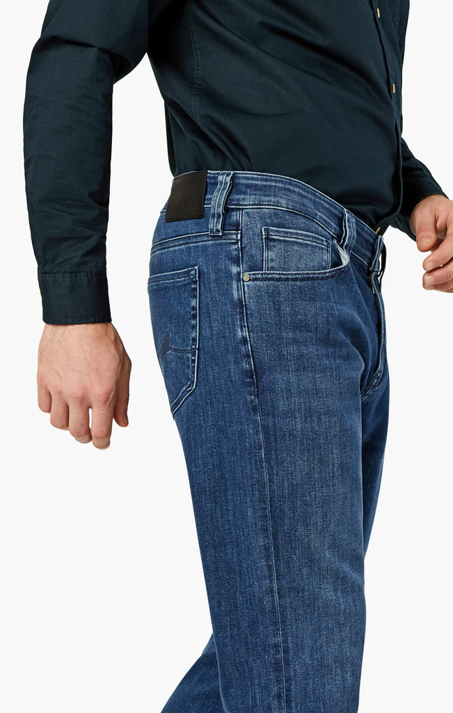These jeans combine contemporary fabrication with classic styling. The higher-rise, straight leg design offers a modern look that can easily transition from casual to semi – formal wear. They are crafted for comfort and effortless wear.