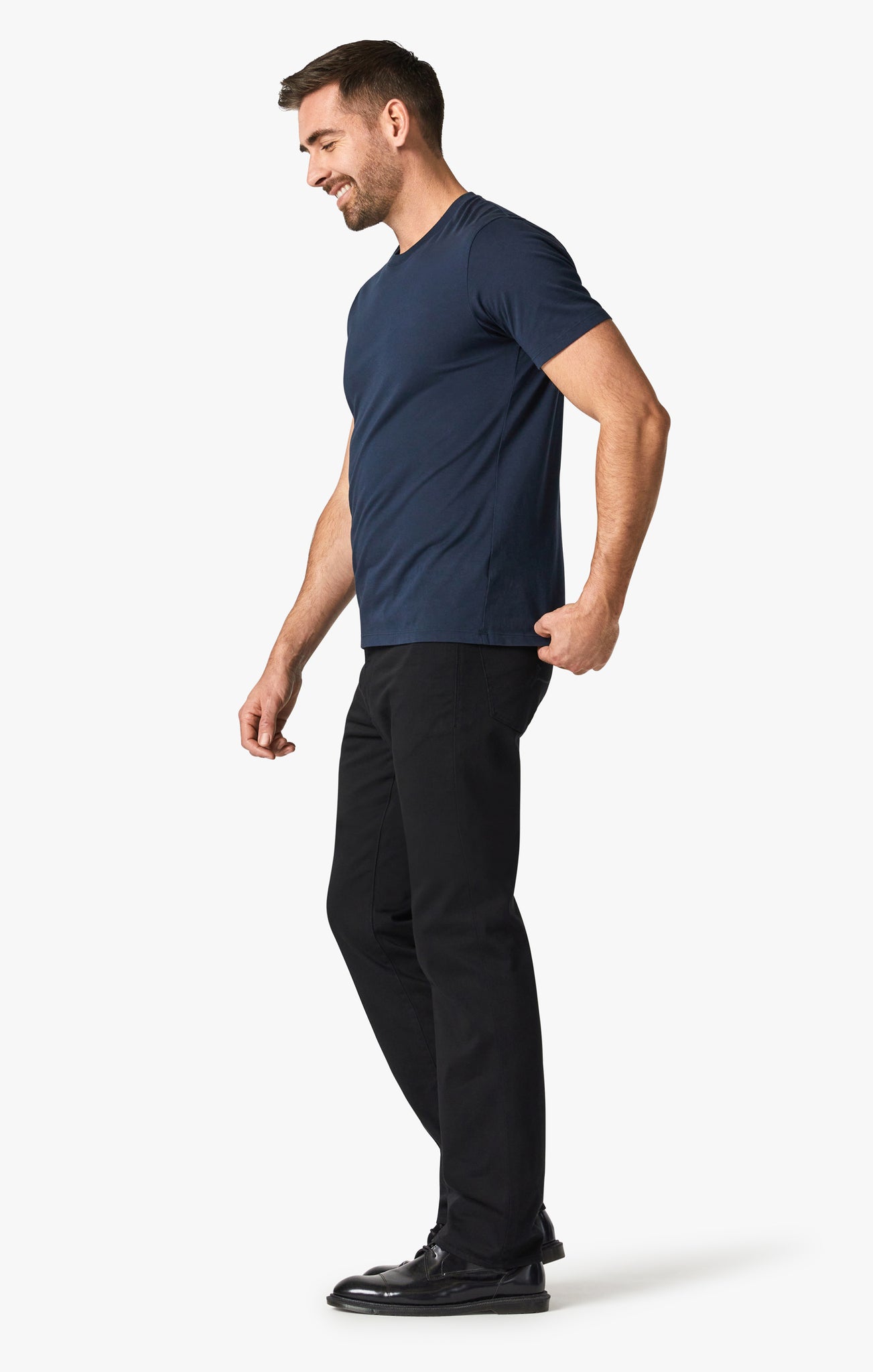 These men’s trousers are a perfect blend of style and comfort. They are crafted with a special treatment to retain the dark wash, and the tailored design ensures a comfortable fit for everyday wear.