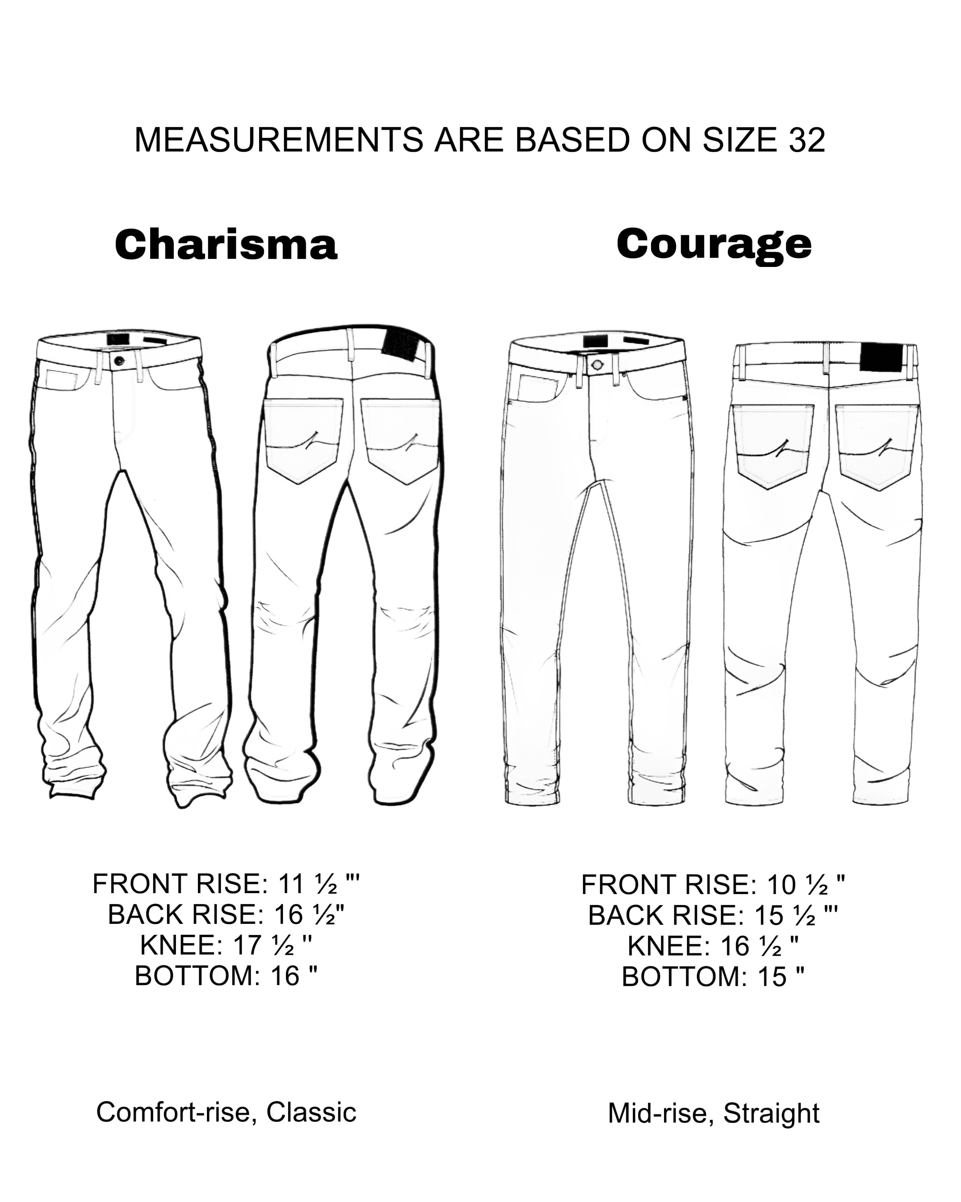 | Fit | Charisma (Comfort – rise, Classic) |
