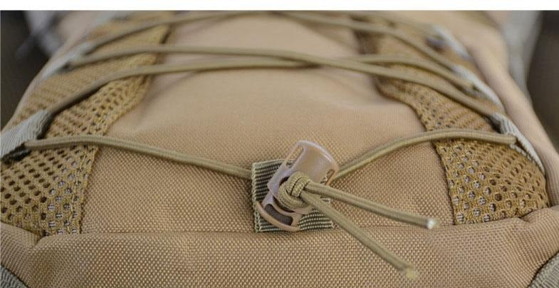 It comes in a variety of color options including ACU Camo, Army Green, CP Camo, Desert Sigital Camo, Jungle Camo, Jungle Digital Camo, Khaki, Tactical Black, and Three Sand Camo. The design is packed with useful features. The main compartment has a zippered top with a buckle, which can secure a water bladder opening or serve as the main access point. The front bungee/cord system with elasticated cords and plastic adjusters allows you to attach tools, gloves, or clothing. There are also front mesh pockets for quick – access storage of small items.