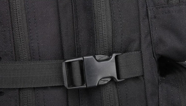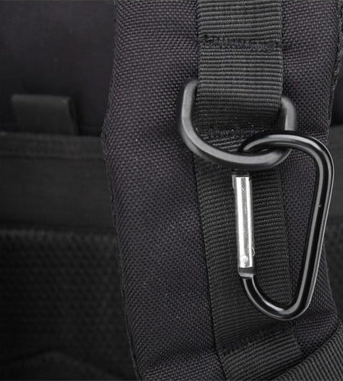 Available in three stylish colors – Army Green, Khaki, and Tactical Black – you can choose the one that suits your style and needs. The backpack features a modular design with MOLLE webbing on the front compartments, allowing you to attach pouches, tools, or gear such as water bottles and flashlights. There are also multiple adjustable straps, including a waist belt, sternum strap, and compression straps, for a secure fit and better load control. A carabiner hook is attached to the straps for quick – access items like keys and lights.