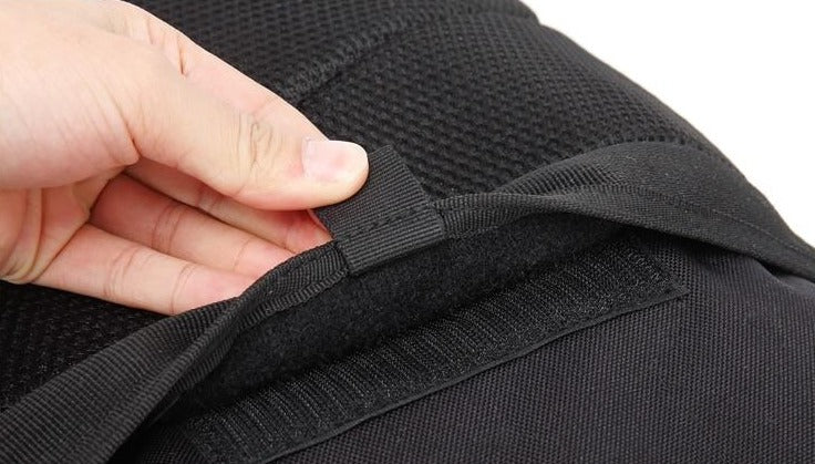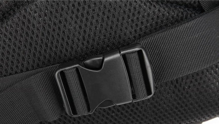 Constructed with high – quality nylon, this backpack offers exceptional strength and water resistance. The primary body is made of a durable, heavy – duty fabric, while the straps and webbing are crafted from thick, reinforced nylon for excellent load – bearing capacity. The breathable mesh back panel with padded sections and labels like “透气” emphasizes comfort during long – term use, reducing sweat and discomfort. The hardware includes sturdy plastic buckles for adjustability and weight reduction, along with reinforced zippers (likely YKK) with pull – tabs for easy handling and durability.