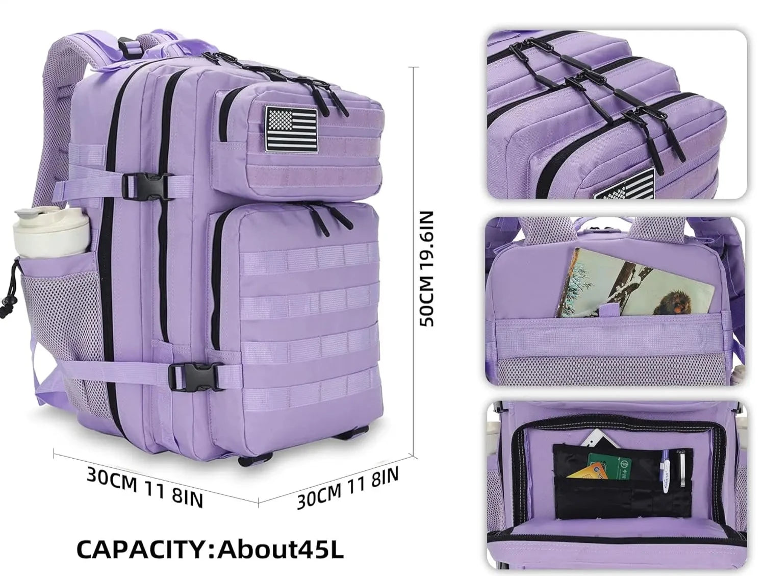 45L 3P Military Molle “Violet” Tactical Backpack Description:
