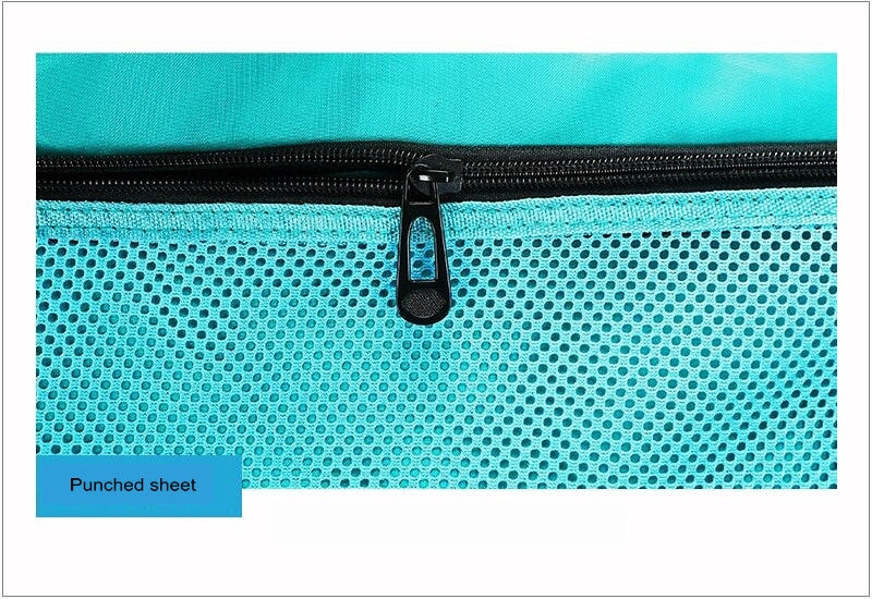 The bag is made with a durable, water – resistant exterior fabric, likely nylon or polyester, featuring a heathered gray texture. This thick and textured fabric resists tearing, ensuring long – term use. The turquoise (teal) interior lining not only adds a pop of color but also provides good visibility. The shoe compartment has a perforated (punch – sheet) mesh section for ventilation, preventing odor and moisture buildup.