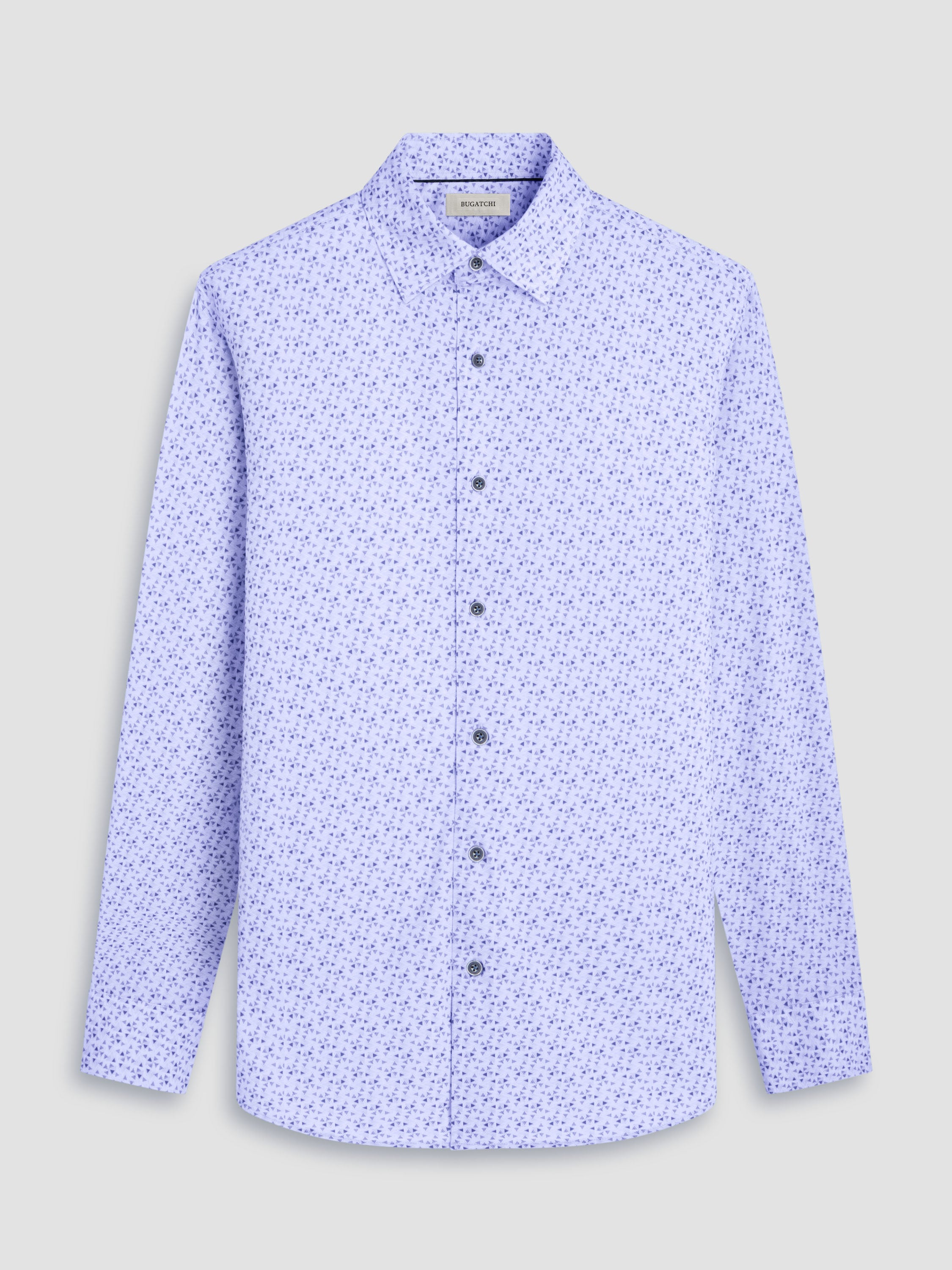 - Design Features: Pointed collar with an inner collar button, button – down front placket, long sleeves with buttoned cuffs, and a small geometric pattern