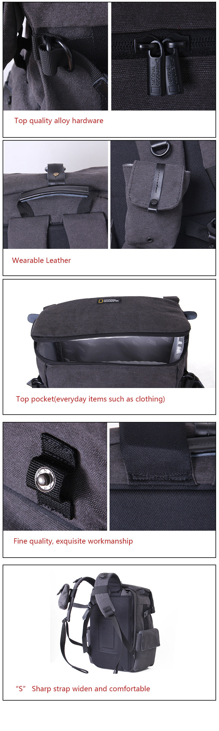 | Quality – Hardware | Alloy zippers/buckles; leather accents for longevity |