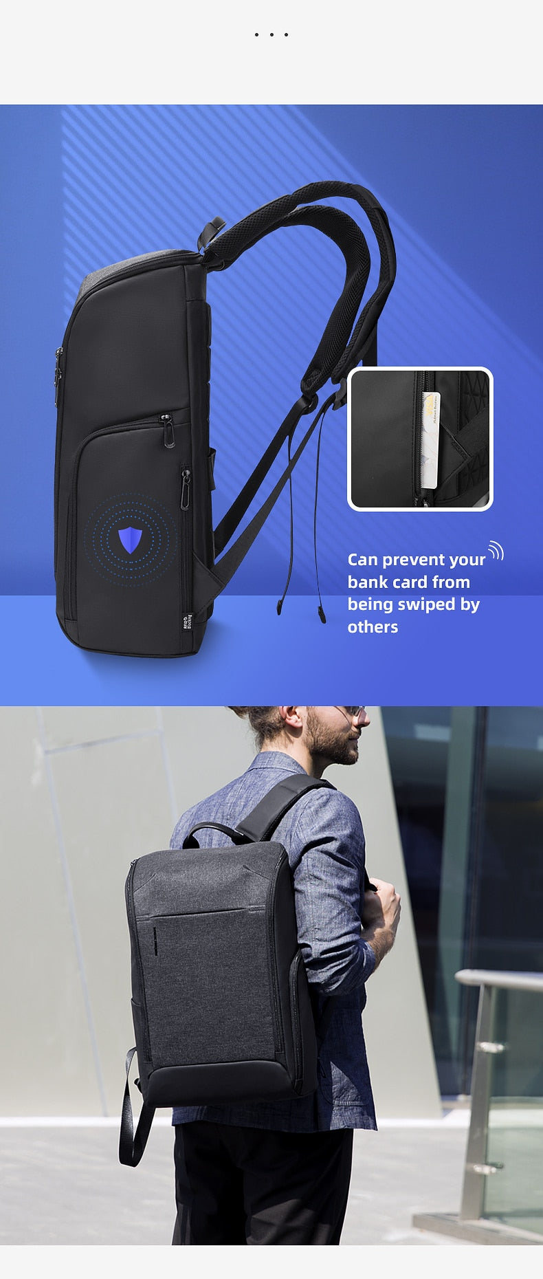 Security is enhanced with the anti – theft RFID – blocking pocket, which prevents unauthorized card scanning. The high – quality YKK zippers ensure smooth operation, and the reinforced stitching and padded shoulder straps contribute to the overall durability of the backpack.