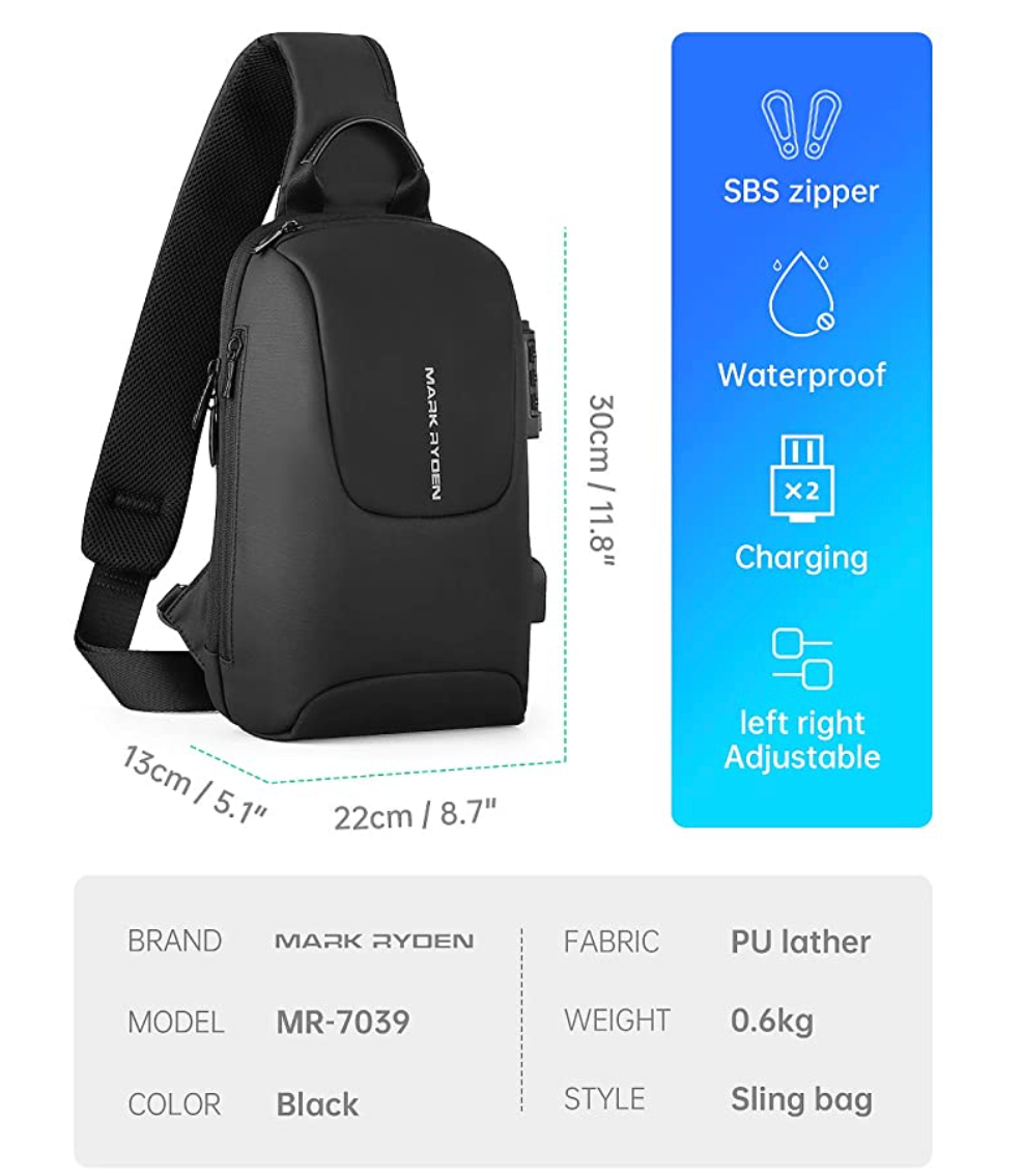 Mark Ryden TSA Approved Anti-Theft Crossbody Sling Backpack Description: