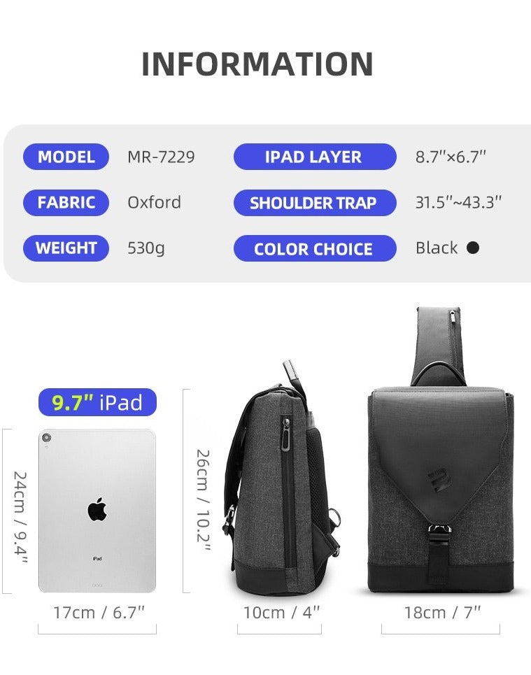 Mark Ryden USB Charging 9.7 Inch Shoulder Cross Body Sling Backpack Specifications: