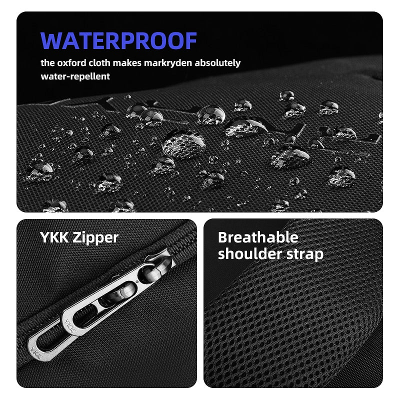 With its sleek, minimalist silhouette and clean lines, the backpack features a primary color of black, presenting a professional and understated aesthetic. The “MARK RYDEN” text is embossed in gray on the front, adding a subtle branding touch. It comes with multiple pockets for organized storage. There’s a front compartment for laptops and essentials, side mesh pockets for bottles or umbrellas, an anti – theft back pocket for hiding valuables, and a shoulder – strap card pocket for convenient card access. The reinforced zippers with metallic smooth pull tabs enhance the overall durability and ease of use, and the top handle allows for easy carrying when not worn on the back.