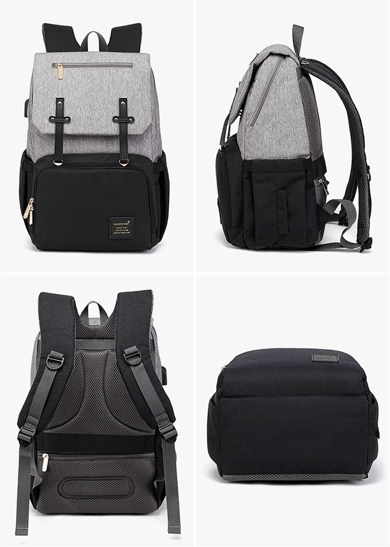 Maternity Baby Diaper Nursing Oxford Backpack w/ Bottle Warmer and USB Charging Description: