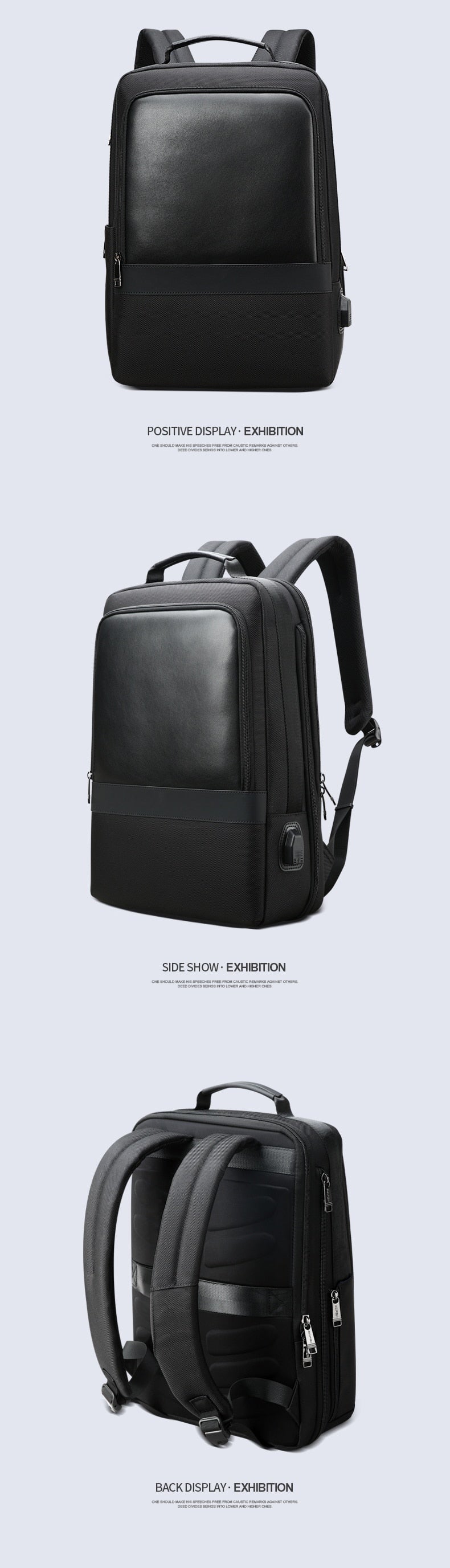 In terms of quality, the backpack shows robust craftsmanship with even stitching, reinforced seams, and smooth zippers. The leather – like front panel has a polished surface, and the fabric body appears dense and water – resistant. The high – quality hardware and integrated USB port ensure long – term durability.