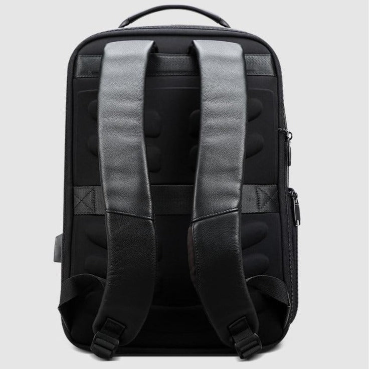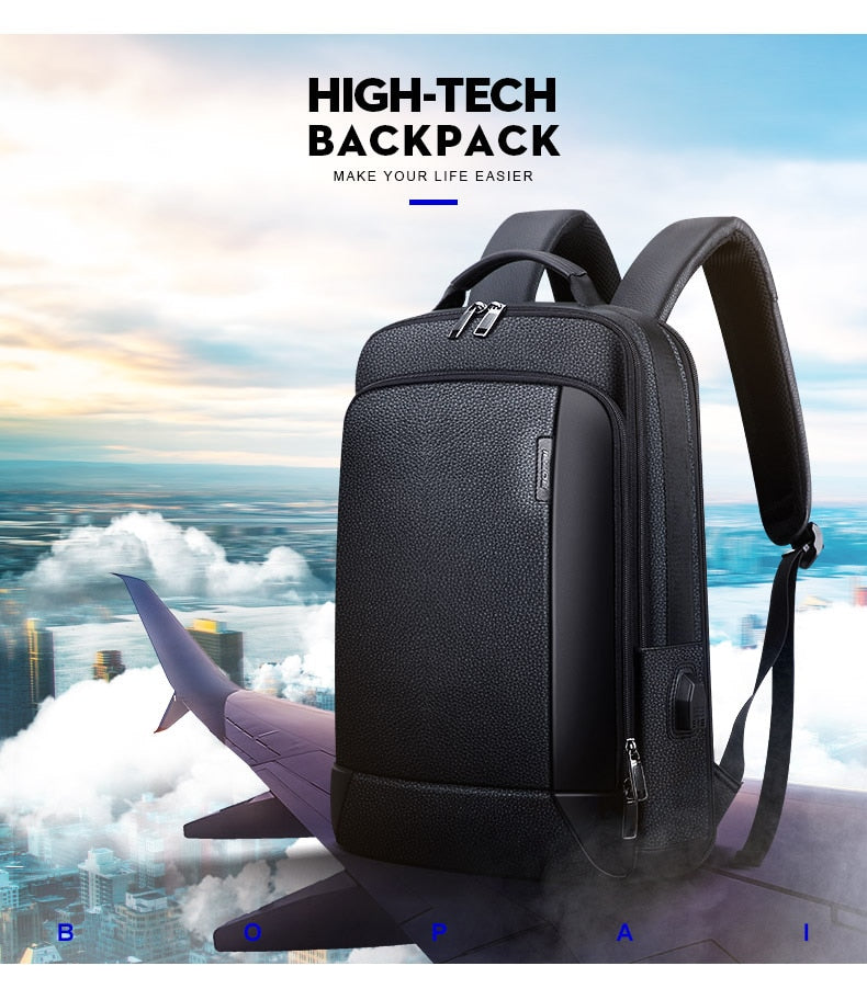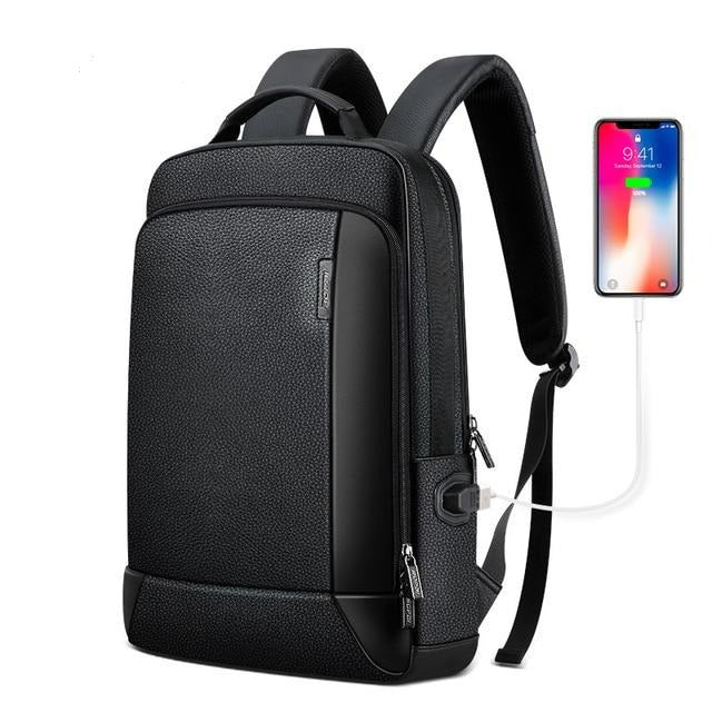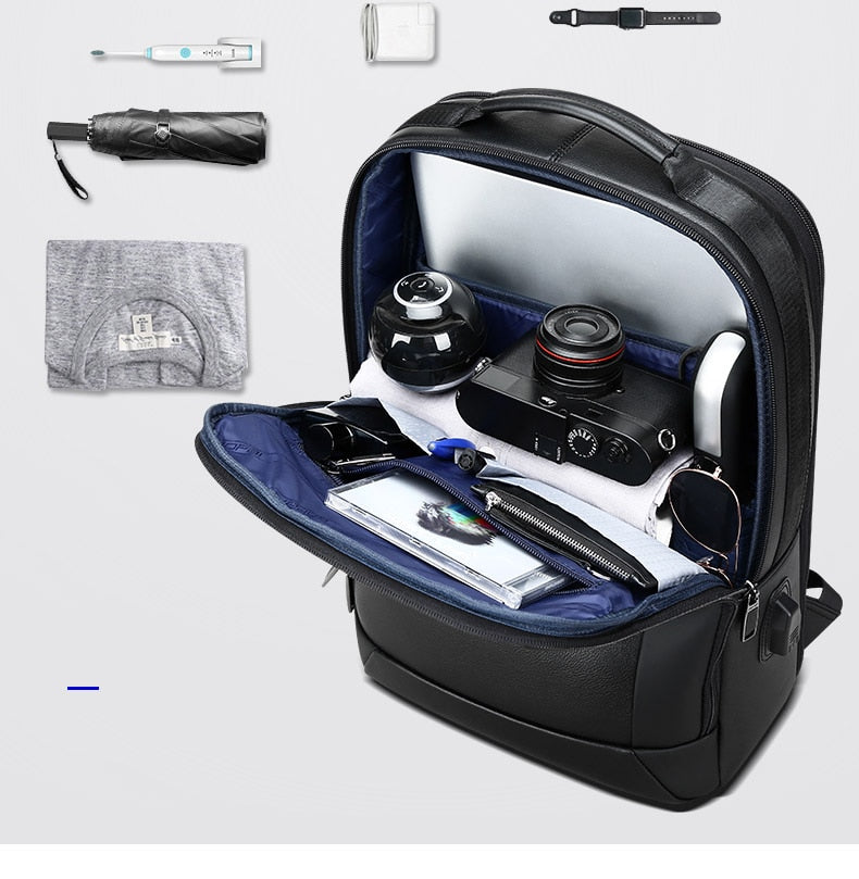 Men’s Genuine Leather Travel Thin USB Charging Laptop Backpack Description