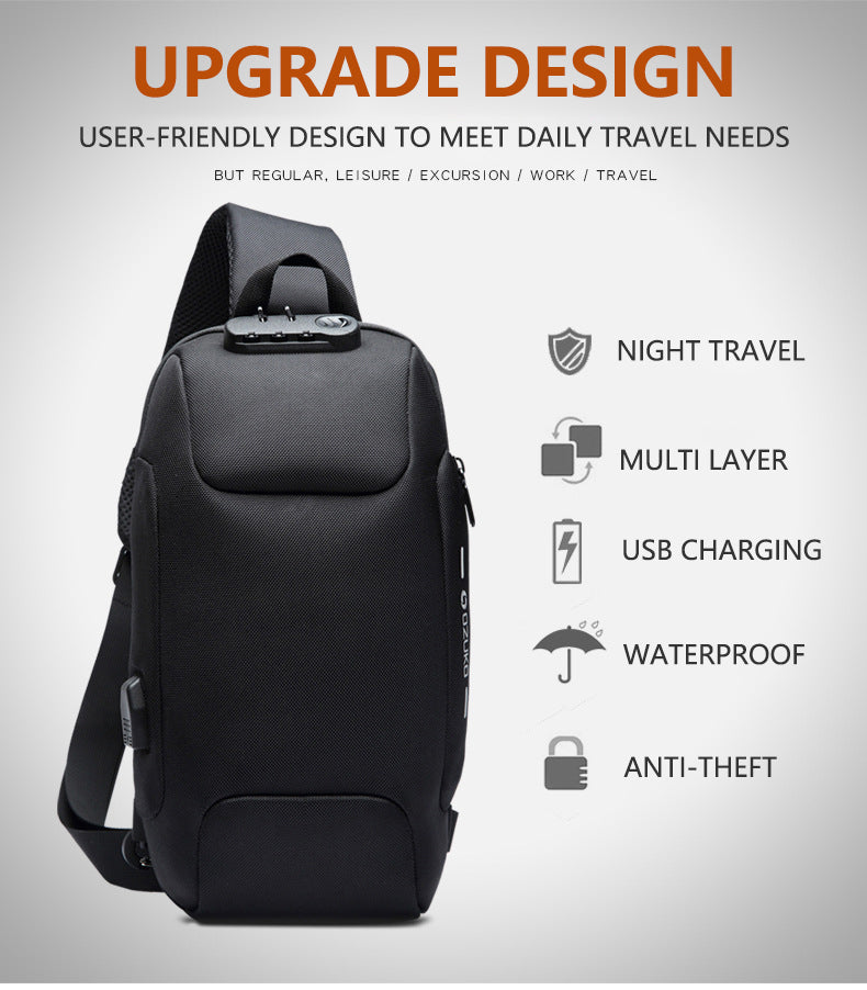 Order your Men’s Small Anti – Theft Sling Backpack with TSA Lock and USB Charging today and experience the perfect blend of style, security, and convenience!