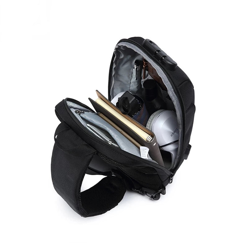 Designed for the modern, active individual, this Men’s Small Anti-Theft Sling Backpack with TSA Lock and USB Charging is the ultimate companion for daily commuting, travel, and outdoor adventures. It combines functionality, style, and security in a compact package.