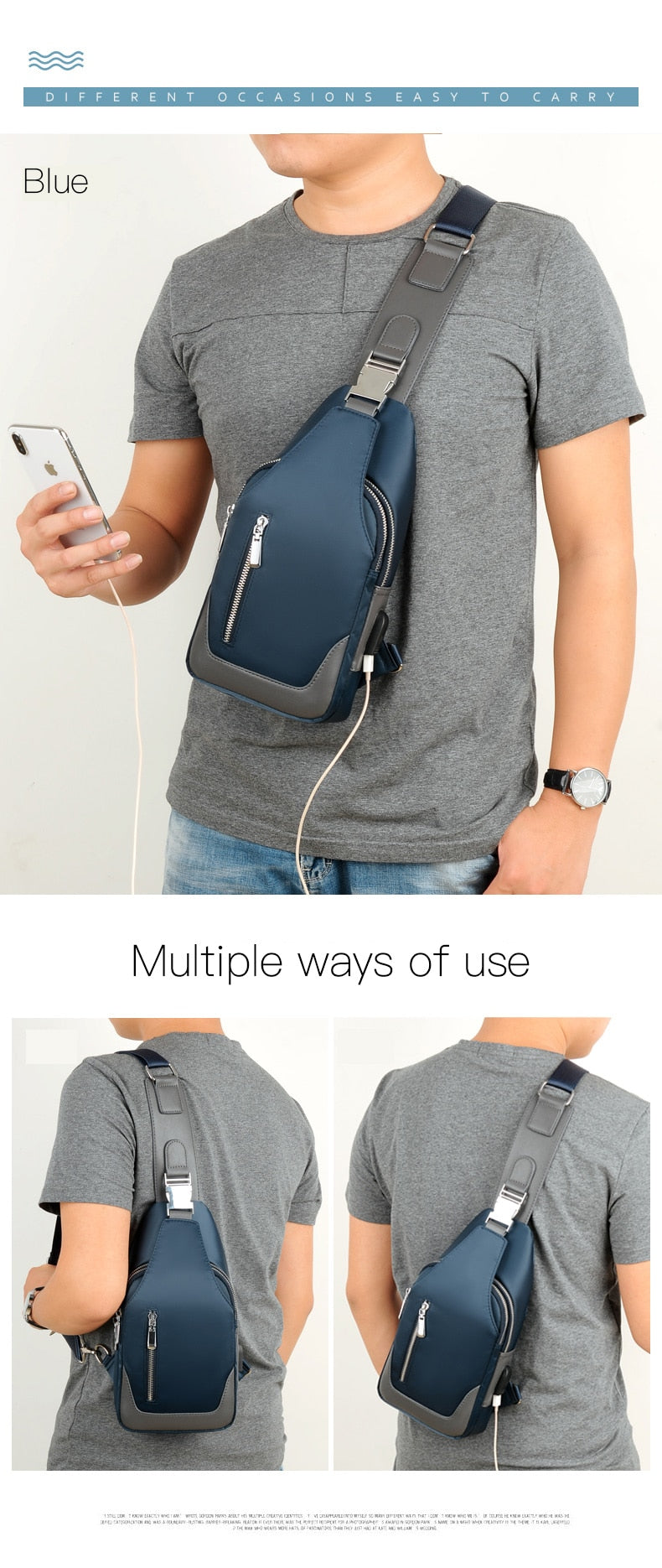 Men’s Small Crossbody Bag with USB Charging