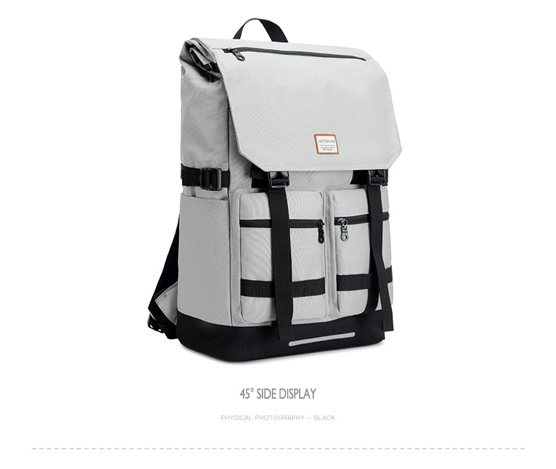 | Key Features | Modular storage with multiple front and side pockets and expandable roll – top main compartment; chest fixed buckle for weight distribution; reinforced shoulder straps with mesh padding; padded back panel; hidden USB charging port; thick fabric, reinforced stitching, and heavy – duty zippers |