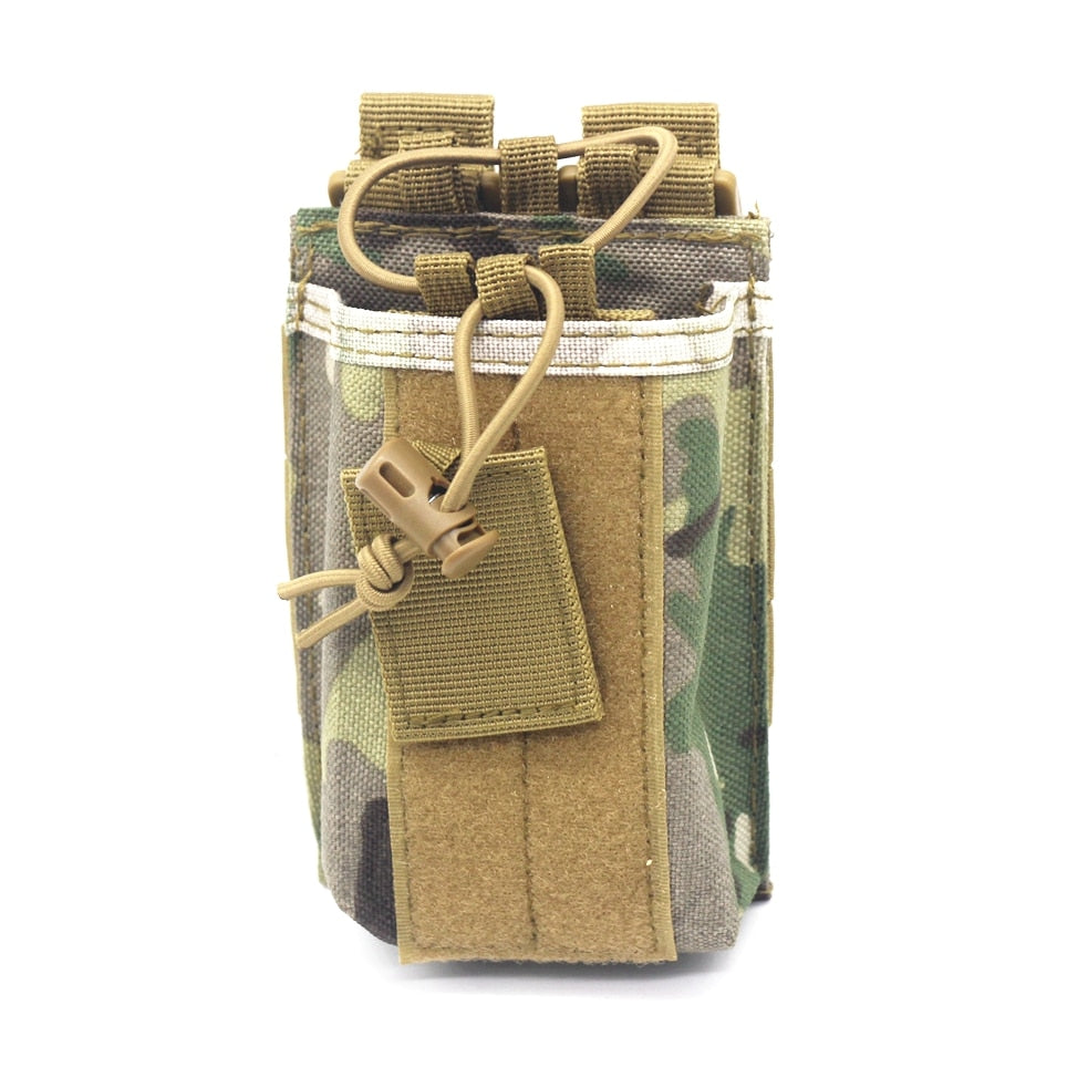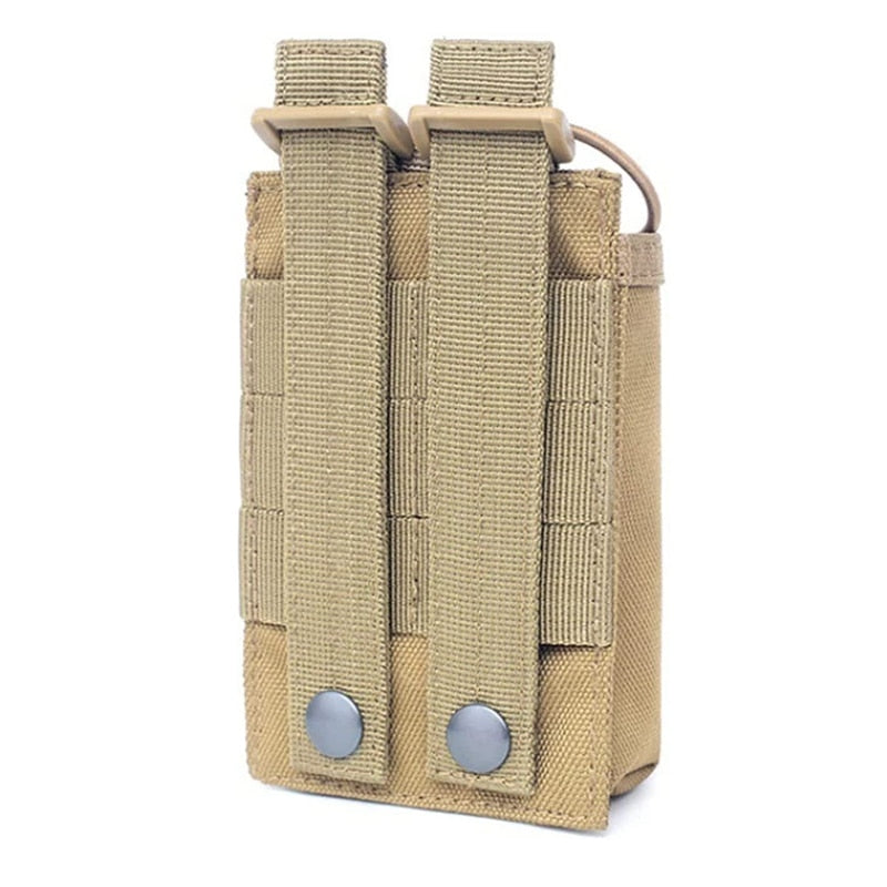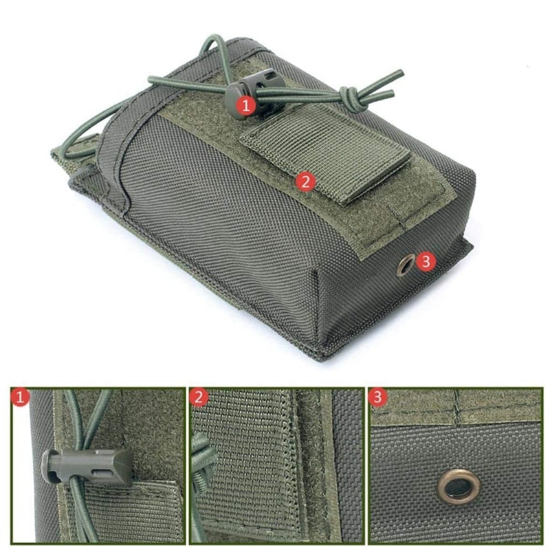 Introducing the Molle 1000D Nylon Tactical Molle Walkie Talkie Pouch, the ultimate solution for securely carrying and organizing your handheld radios in rugged environments. This tactical radio pouch is designed for tactical, military, or outdoor scenarios such as airsoft, security, and field operations.