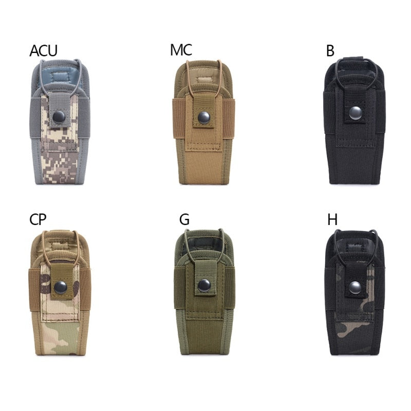It comes in a variety of colors and patterns to suit different needs. You can choose from solid tones and camouflage patterns, including the newly added ACU Type 2, CP Type 2, G Type 2, H Type 2, and MC Type 2. The vertical, compact shape of the pouch, with dimensions of Height ~5–6 inches, Width ~2–3 inches, and Depth ~1–2 inches, is compact enough to fit most standard walkie – talkies such as Baofeng, Motorola, or similar models.