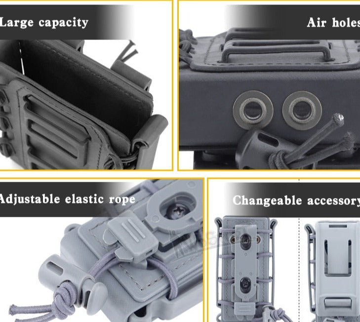 | Features | Adjustable elastic rope, air holes, modular back clip system, large capacity (single – mag most variants, some dual – mag), stitched reinforcement |