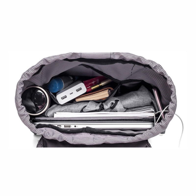 | Organization Features | Main compartment with a cinch – top closure (toggle system), internal pockets (laptop compartment, zipper pocket, phone pocket, and mesh cup pocket), headphone hole (integrated into the main compartment) |