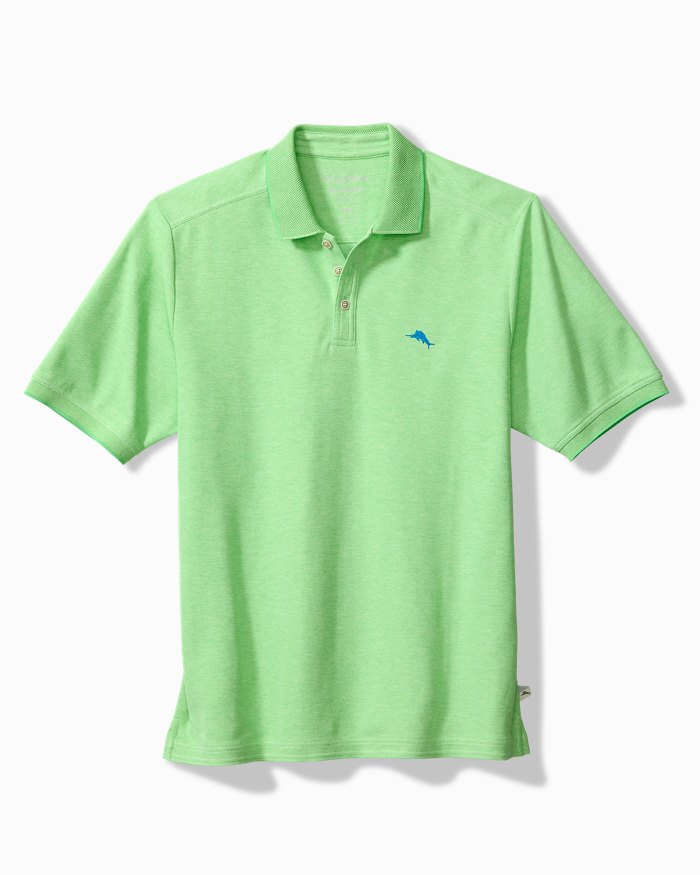- Design: Short – sleeve polo with straight hem, side vents, and embroidered Marlin on left chest
