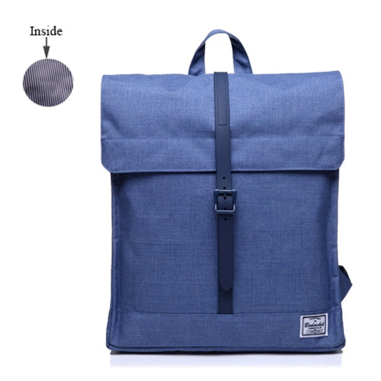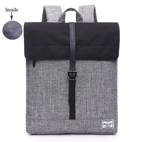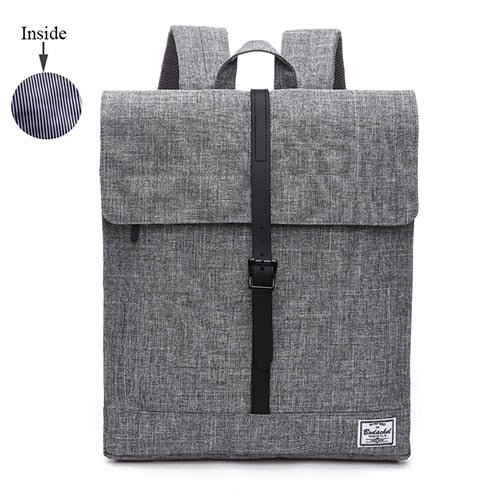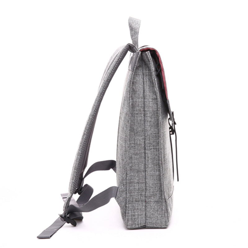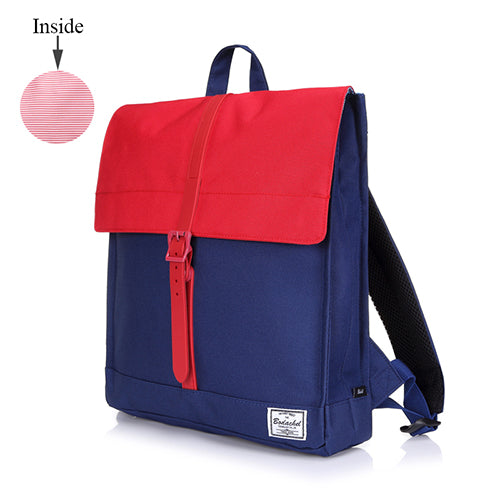 The exterior of the backpack is crafted from a water-resistant fabric, likely a durable blend of polyester and nylon. This fabric not only provides protection against light rain but also ensures long-term durability. The woven and textured exterior comes in a variety of colors, including Denim Blue, Grey and Black, Navy 1, Navy 2, Navy and Crimson, Stone 1, Stone 2, and Stone and Black. The interior lining features striped patterns, such as red/white, black/white, or blue/white, adding a touch of style while helping to organize your belongings. The lining is likely made from a polyester or cotton blend for comfort.