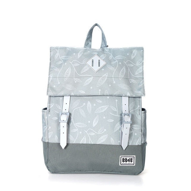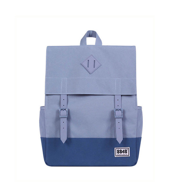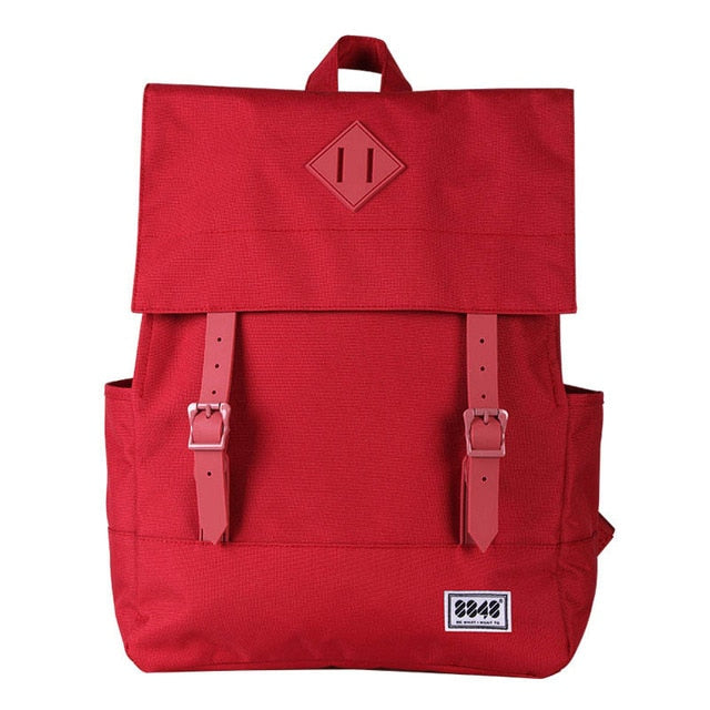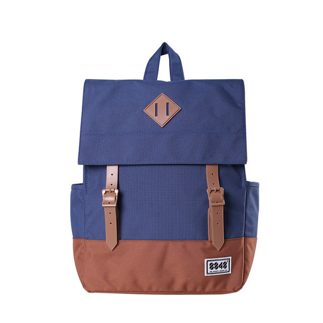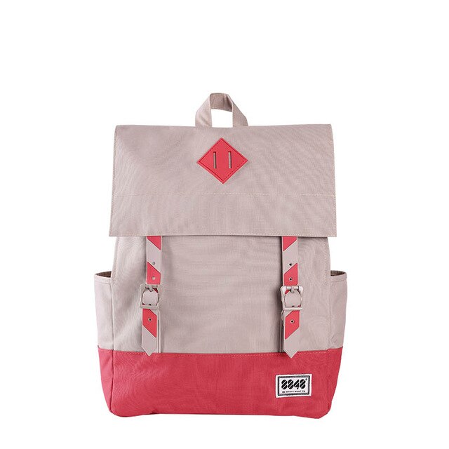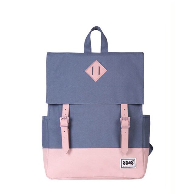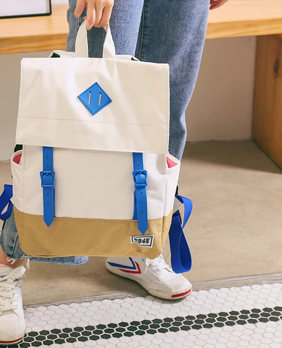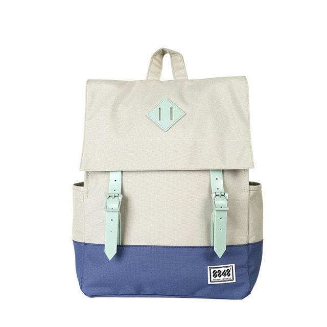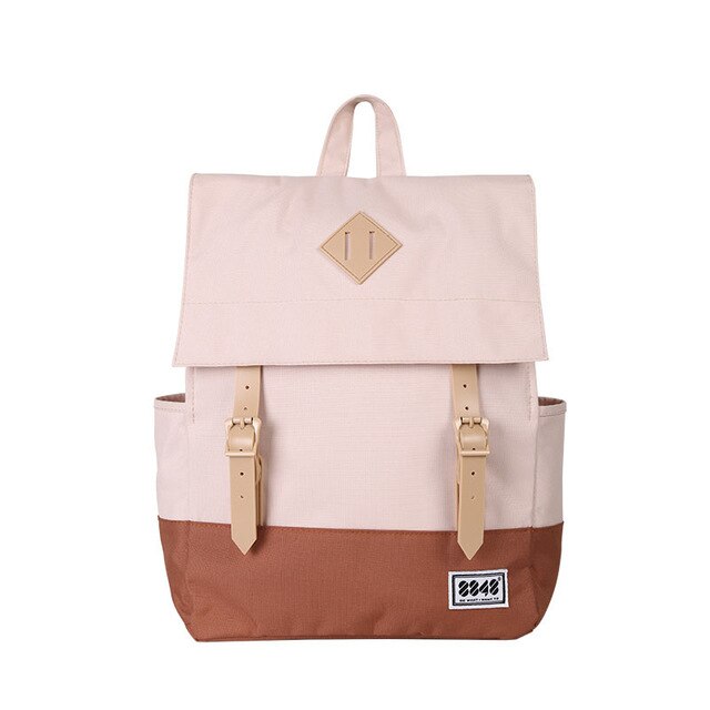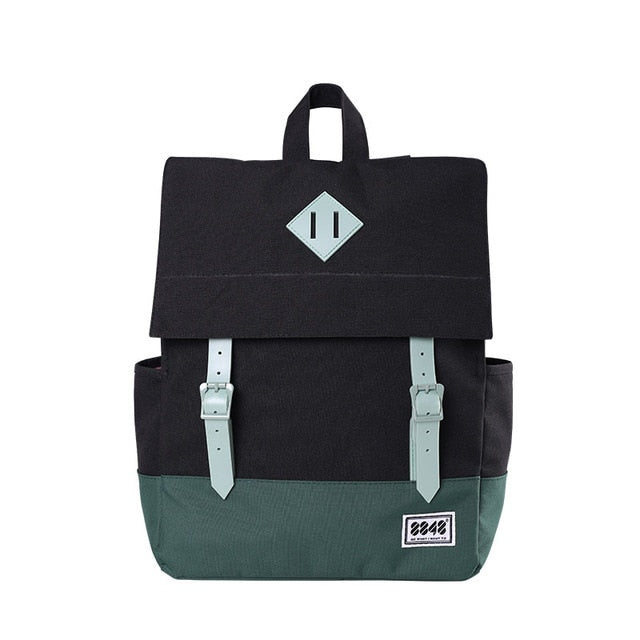 The main body of the backpack is crafted from durable, water – resistant canvas or a canvas – like synthetic fabric, making it ideal for long – term daily use. The adjustable shoulder straps and flap – securing straps are made of a leather – like synthetic material (faux leather), adding sturdiness and a touch of style. The small, diamond – shaped accent on the flap, likely made of faux leather or a leather patch, provides texture and contrast.