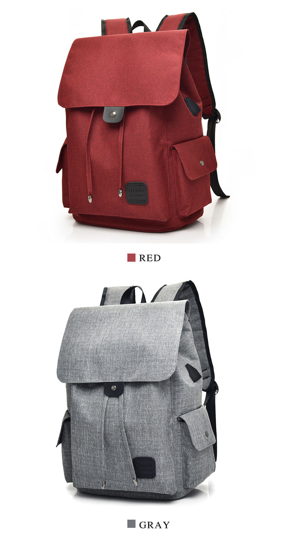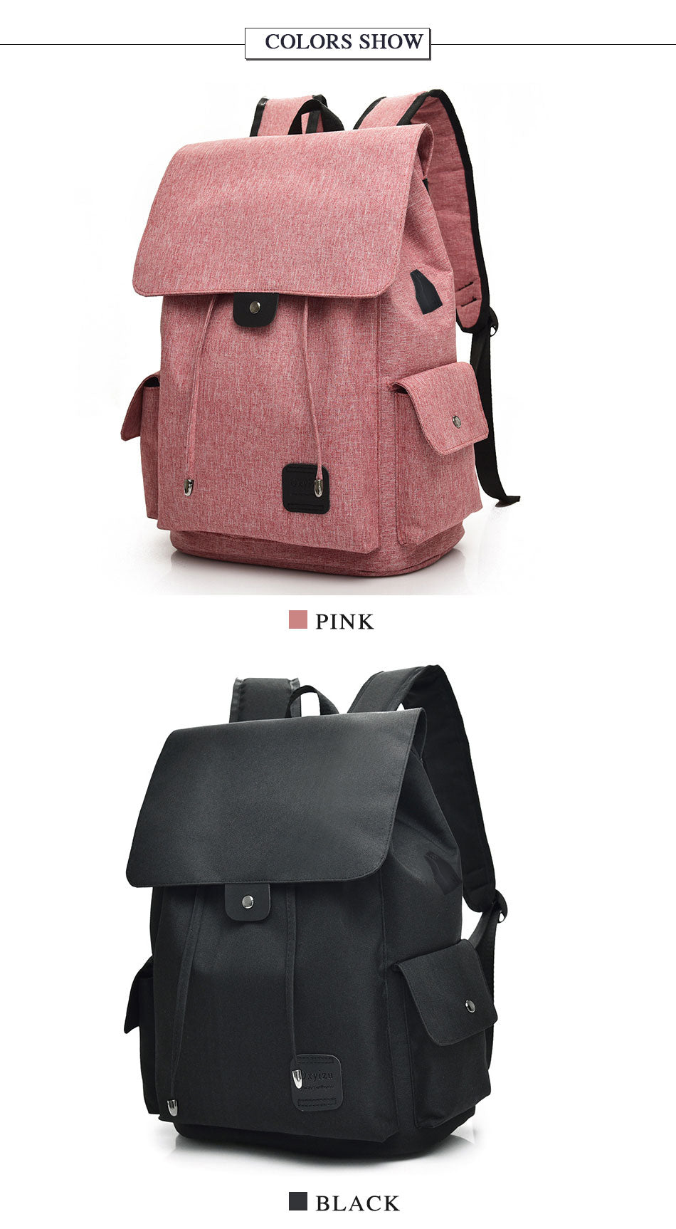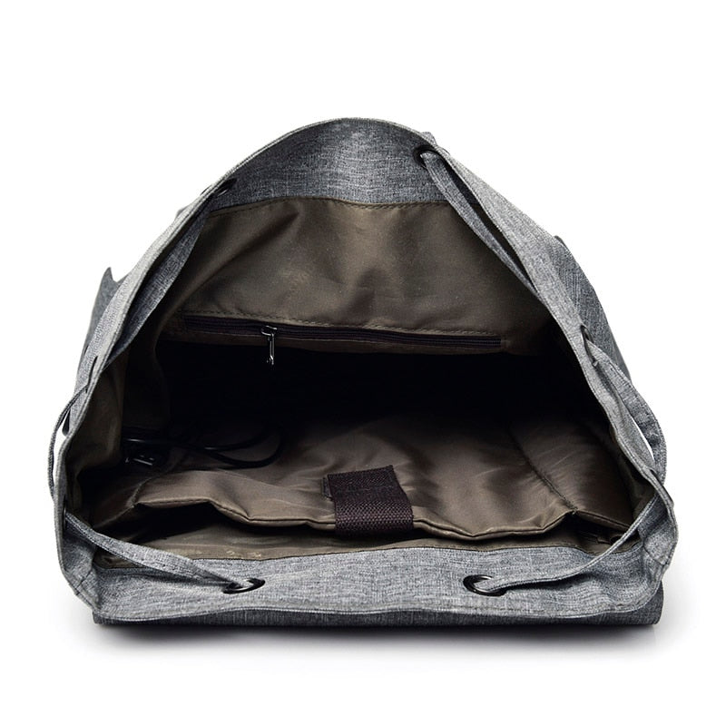 Designed with practicality in mind, this backpack has a minimalist flap – top closure with a drawstring and metal eyelets for easy adjustment. The front pocket is secured with a snap button and features a small leather – like patch with the brand/logo. There are also side pockets reinforced with metal snaps, ideal for holding water bottles or small items. And let’s not forget the integrated USB charging port on the side, allowing you to charge your devices on the go (a detachable data cable is required).